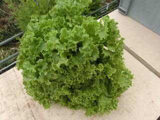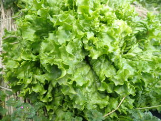 葉は鮮やかなグリーンで、ちりめんとなります。立ち型ででやや大葉となり、苦味がなく、軟らかくておいしい。サラダや料理の添えに美しく、プランターや家庭菜園で重宝な、作りやすい野菜です。
