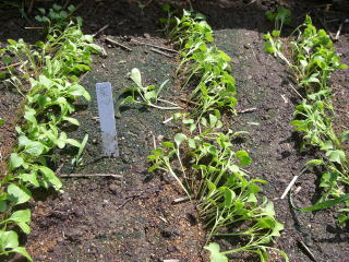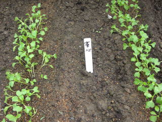 発芽温度は25℃前後です。直まき、移植栽培どちらでもできます。うね間60cmにとってすじまきし、発芽後込み合ったところを順に間引いて株間10〜15cmほどの1本立ちにします。苗を育てる時は本葉4枚程度で植え付けします。大株にして分岐を収穫していく場合は株間をやや広げます。
