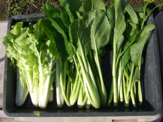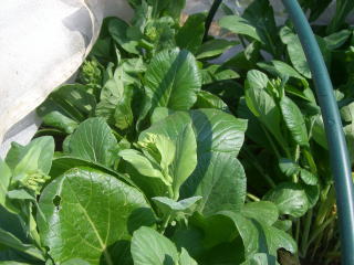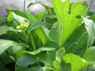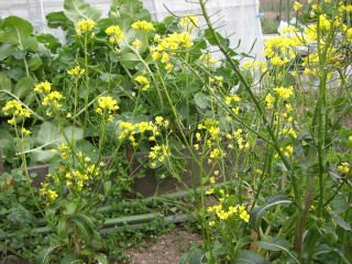 とう立ちして蕾のついた茎を、株ごと収穫して食べるツケナです。温暖な気候に適し暑さに強く、育つ期間も短くて、いつでもよくとう立ちします。
