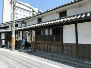 正徳年間(1711〜1716)の建築といわれている。本町通りに残る倉敷の古い町屋で三百年を経て、美観地区では最も古い建物です。特徴は、二階にある七つの倉敷窓のすべてに防火用の土扉が付けられていることで、倉敷唯一の町屋です。扉は傷みもひどく崩壊の危機にありましたが、修復が成りました。