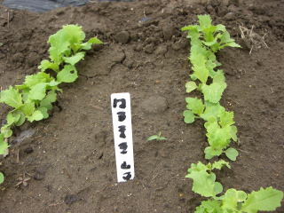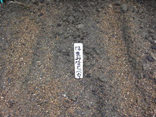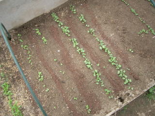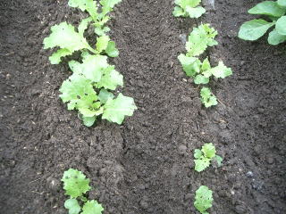 ほぼ周年をとうして蒔けます。1m幅の畝に条間20cmでスジまき、またはバラまきとし、発芽したら込んだところを間引き、本葉2〜3枚で株間8cmになるようにします。