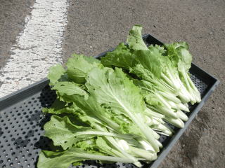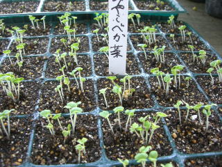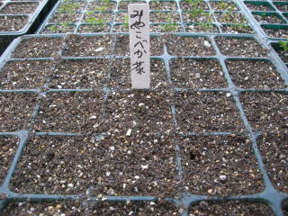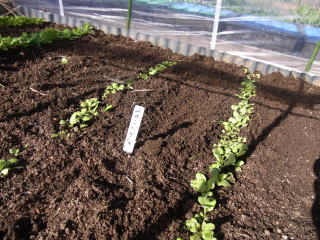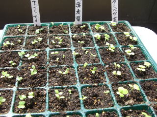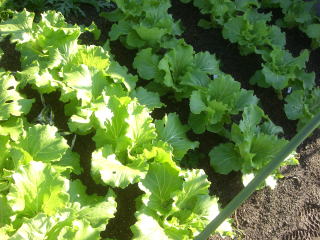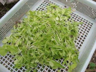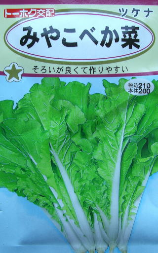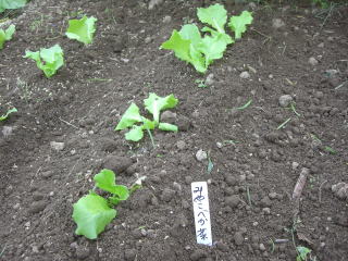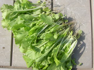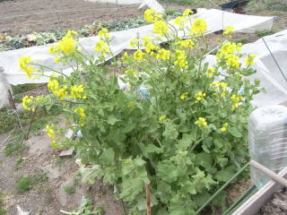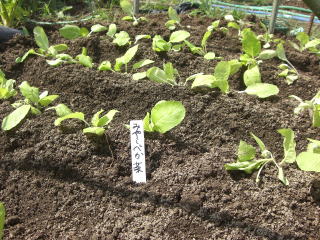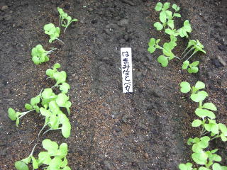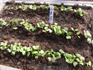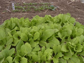 ジンチョウゲの花が咲く頃からタネをまきます。年により天候不順で低温(13℃以下)がたびたび来ると「トウ立ち」してしまうこともありますので何回かに分けて種まきします。うね幅50cmに薄くすじまきします。プランターの場合はばらまきして薄く土をかけます。本葉4〜6枚、草丈20cmのころが食べごろで、なるべく早めに収穫します。虫がつきやすいので寒冷紗のトンネルなどで防ぎます。肥料は1u当たり最初に堆肥2kg、石灰100g、化成80gを施します。