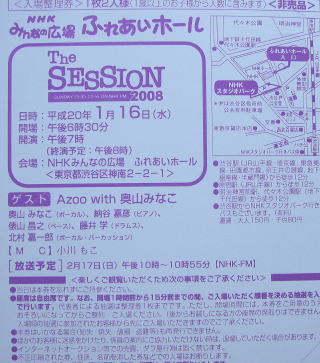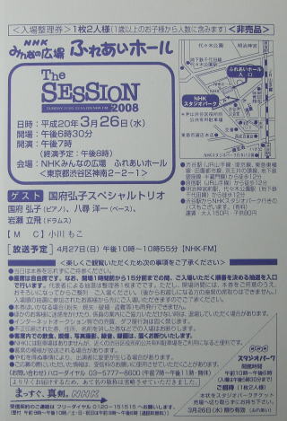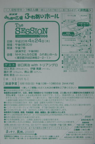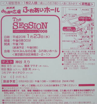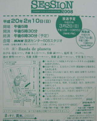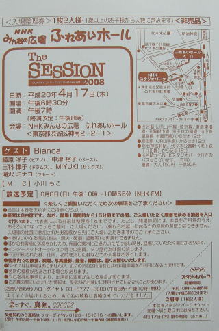 放送予定日は招待はがきによると6月8日で、今日は4月17日、プロデビューが5月21日(アルバムリリース)ややっこしいセッション初出演どのことで、「緊張しています、ドキドキです」なんて見えませんでしたよ。アルバム製作に当たってプリ・プリや聖子様、近いところではコブクロのサウンドを手がけた笹路正徳さんが光背で力強い。これからがんばるぞ、いやいや これからがんばるね!