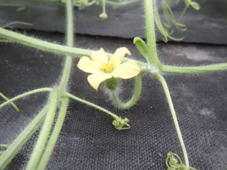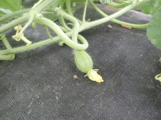 雌花の充実が良くなる3〜4番花まで待って着果させる。