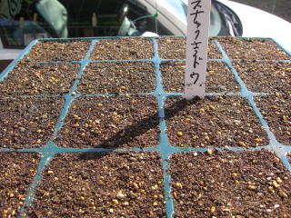 種まきは直播が原則らしいのですが、ポット播きの方が管理しやすいです。気温にもよりますが、10月下旬蒔きで3週間以内に定植(直根性で細根が少ない)するようにします。ポットに移植する場合は本葉2〜3枚以下でおこないます。育苗後本葉10枚で根鉢を崩さないようにポットに灌水し後定植します。