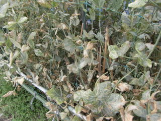 気温が上昇し莢の成育が早くなると取り遅れによる不良果が多くなるので草勢を保つためにも不良果を必ず取り除きます。