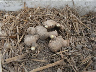 根ショウガの種は新芽が少くないので種の大きさも大きい根塊(200〜250g)が必要です。