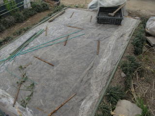 透明ビニールでトンネル作り温度上昇をはかります。