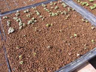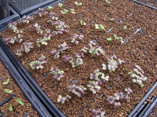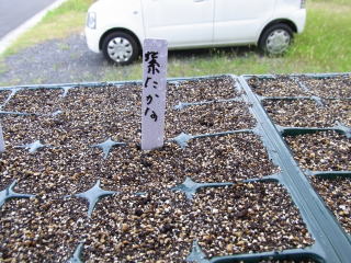 種まき: 摘湿を保ち、発芽をそろえます。本葉4〜5枚の若苗に育てます。