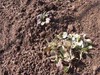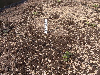 畑に直接まきますが、移植することもできます。土を十分湿らせて、畝巾60cm位に薄くすじまきします。かるく土をかけます。生育に応じ順次間引きし、本葉5〜6枚までに株間40cmにします。