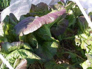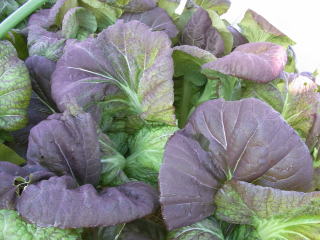 丸葉で茎が太く多肉で、寒さとともに赤紫色になります。たか菜の中ではやや寒さに強いほうで、苗は短期の漬物に、大株は長期の漬物に利用します。