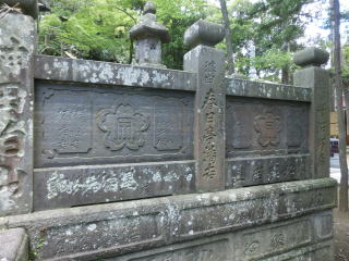 墓塀には寄進された多くの人の名が刻まれている