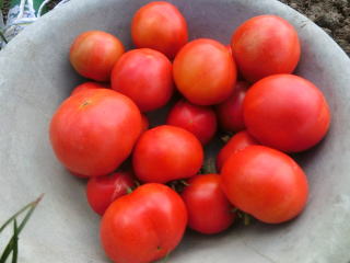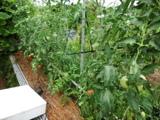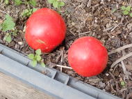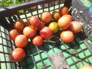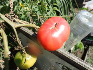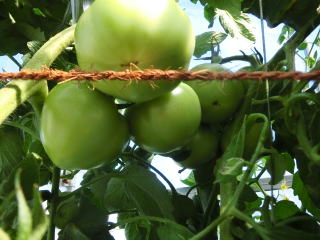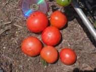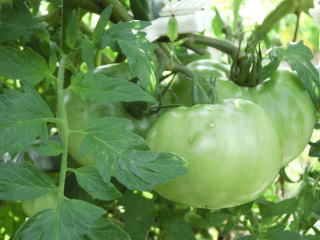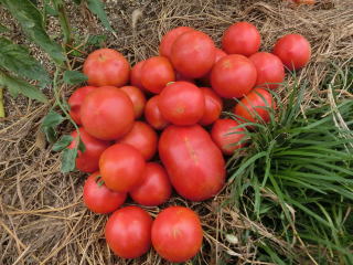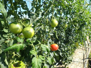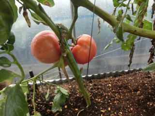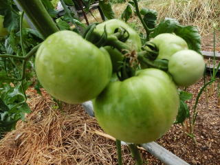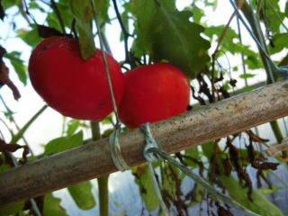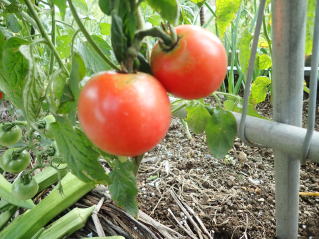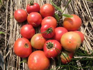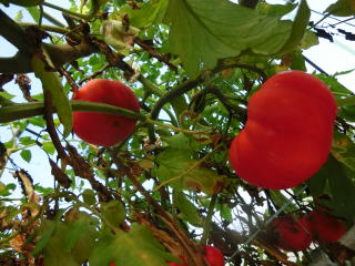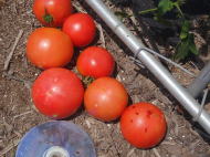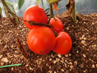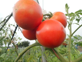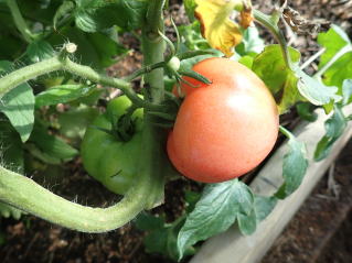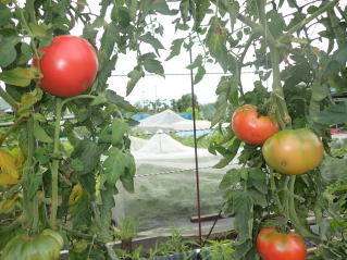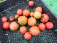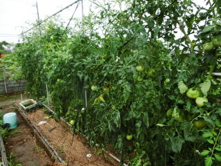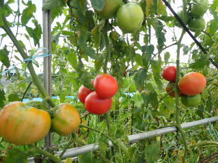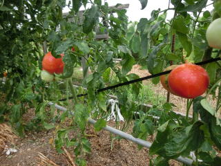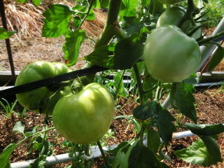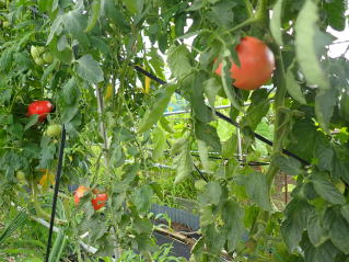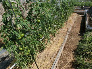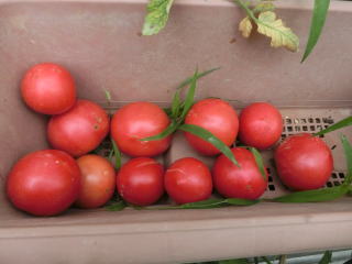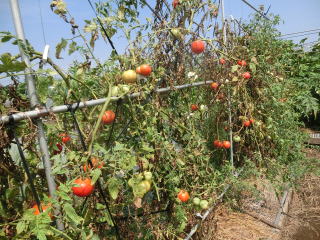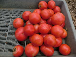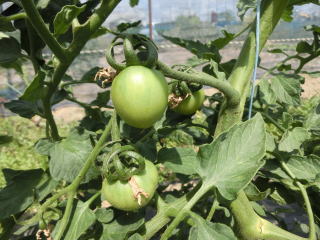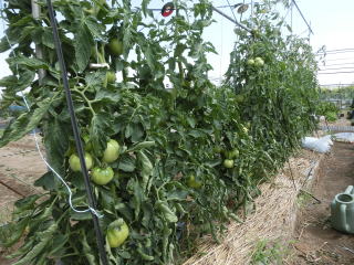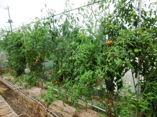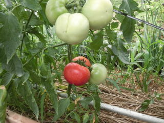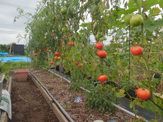 赤くなったら収穫です。5段目開花期に再度追肥すると長く収穫することができます。