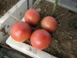 熟期は極早生で上段果房への着色の進みが早い。果色は美しい桃色で、果実全体から均一に着色する。食味が素晴らしい冬春栽培用トマトです。