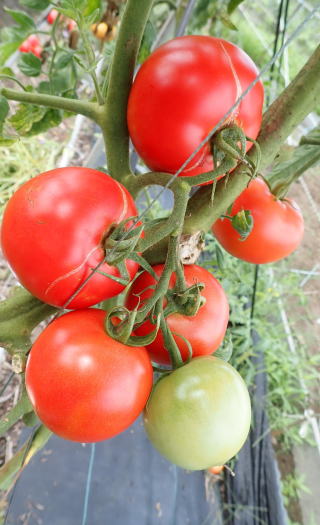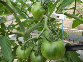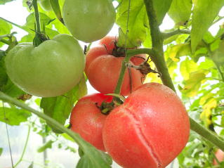 着果性よく、下段より果実の肥大力があり多収。果実肩部の日焼けによる黄化が少ない。
