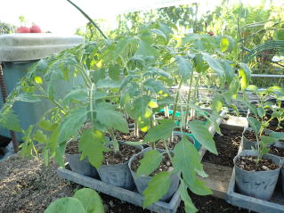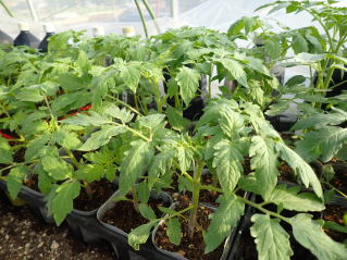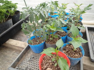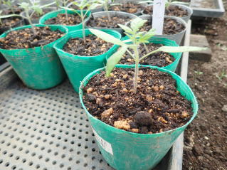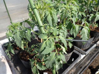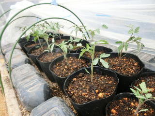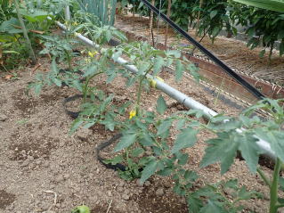 ポットなどで育苗し、がっちりした苗に仕上げます。一番花の開花苗を定植しましょう。