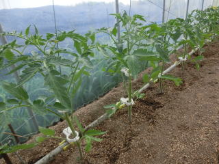 ポットなどで育苗し、がっちりとした苗に仕上げます。一番果の開花した苗を定植します。脇芽は適宜取り除きましょう。三段目開花が追肥時期の目安です。それまでは灌水を控えめにします。赤くなってから収穫します。五段目開花期に再度追肥すると長く収穫できます。