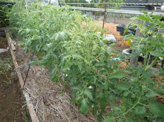 脇芽は適宜取り除きます。3段目開花の時が追肥する目安です。それまでは栄養成長過多にならない様潅水は控えめにします。