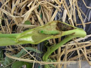 茎に侵入したオオタバコガ