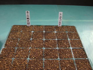 五月初旬の定植予定では、遅くとも二月下旬には播種することになりますが、発芽温度25~30℃を確保するには、人工的に温度を確保する必要があります。そのような機器が販売されてはいますが結構な値段がするそうですので。