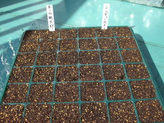 種まき 簡易ビニールハウス内加温、保温。