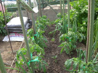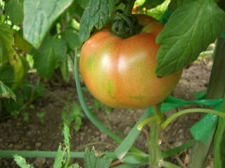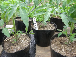 とまとは赤く色づく果実から栽培意欲がわいてくる家庭菜園の王様です。なす科野菜の中では対病性を持つ種が比較的多く、栽培は思いのほか易しいと感じられる。但し、梅雨時の疫病、秋口にかけてのオオタバコガ、ヨトウムシ、ハスモンヨトウに悩まされることは確実です。中でも疫病は、同じナス科野菜じゃがいもの収穫期と、とまと初期生育期が梅雨時と重なる為に、じゃがいもから伝染しやすく、周囲を見ながら圃場を選択する一要素となりえます。