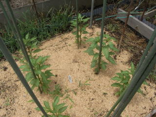 定植の時の苗は、第1番花が開花しているくらいの大苗がよい。定植は畦幅120cm、株間60cmとする。