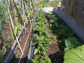 植え付け2〜3週間前に、堆肥、苦土石灰、緩効性化成肥料を施し、よく耕します。畦は、畦幅1m位、高さ20〜30pを目安に作ります。