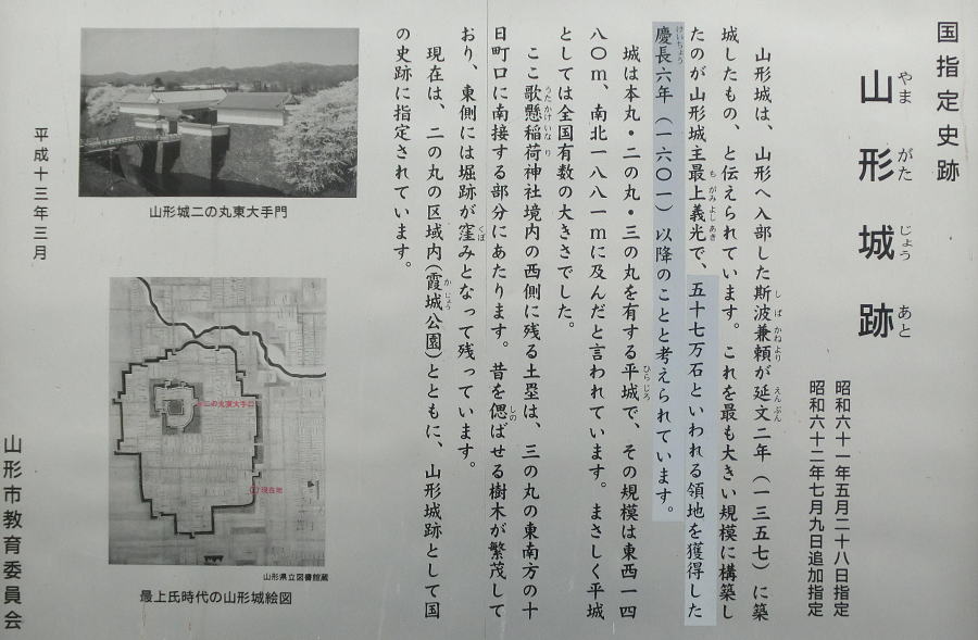 山形城三之丸外郭土塁跡 (国指定史跡)昭和六十二年七月九日指定