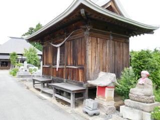 門を入って左側の御堂には、数々の厄災を免れてきた霊験あらたかな胎蔵界大日如来尊像(延文五年の1360年、南北朝時代の作像 県指定文化財)と、米沢三十三観音第五番・聖観世音菩薩をお祀りしており、毎年七月七日、八日が例祭である。