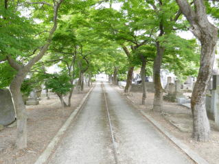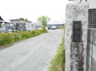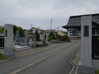 道を挟んで墓地がある