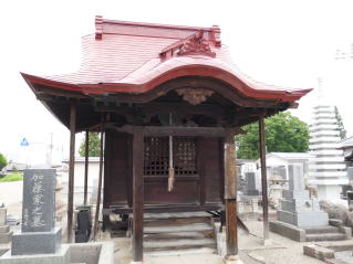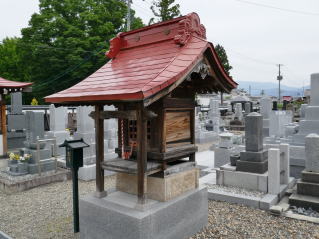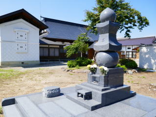 善光寺如来尊が米沢に御移りなるに及んで、上杉家廟所内に納められていたが、昭和十六年この地に安置された。当山では、世のため人のために生きた尊霊を御慰め申し上げるとともに、幼子たちの美しく健やかな成長をいつまでもお守りくださるようお願いし、花壇を作ってお墓をきれいにし、いつもみんなで手を合せ、お祈りしています。