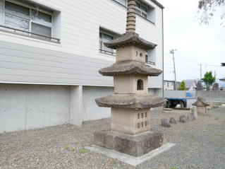 明治二十九年(1895年)日清戦争の大勝利を記念するとともに西蓮寺門前に献灯と街路照明を兼ねて、粡町の松川楼、松川此蔵が築造したもので中は空洞になっており鎖で石油ランプを吊り上げ毎夜点灯したものである。その下にある休み石は江戸時代の中期粡町をはじめ宿場町の路傍ところどころに置いてあった。旅する人や行商人の休み場所として思いやりの生活の智恵からであろう。今は道路の開発によってほとんど姿を消している。門前のこの石だけ昔の面影をつたえている。