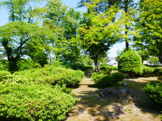 修辯和尚はその田地の一部を埋めて広大な庭園を築かれた。松島を模して池水と松樹怪石を配し、遠く吾妻の秀峰、近く古志田、遠山の風色を借景として、鶴城の佳望、上杉三庭園の一つと称され、歴代藩主の遊残の庭となった。鷹山公もよく訪ねられた記録などもある。しかし、明治年間に至り再び田地に改められ、昭和二十二年の農地改革で寺領から失われてしまいました。