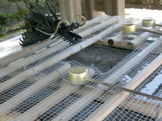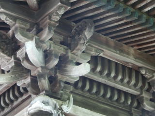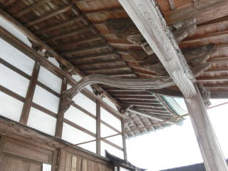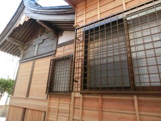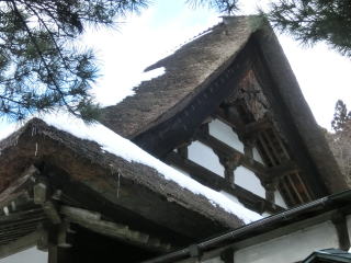 本堂は、延宝四年(1676)建立 入母屋造茅葺で、桁行:二十九七メートル 梁間:二十二メートル。
