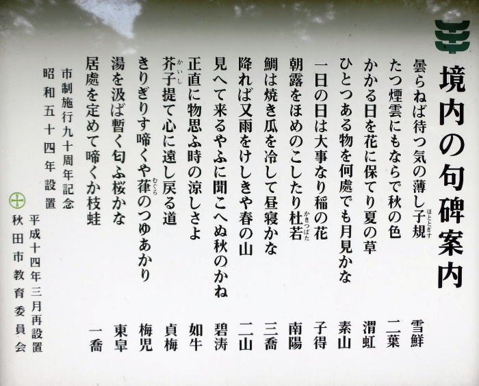 日莚が、七十一歳の老体をもって久保田(秋田)城下に到着したのは、延宝七年(11679)十月二十四日のことであった。弟子の随従は幕府の老中・大久保加賀守が許さなかったという。しかし、間もなく師匠日莚の後を追って江戸から善行院、日晴、春芸、恵忍の四人の弟子が久保田に来て寺町の久城寺の境内に庵居し、ひそかに師、日莚を看護したという。日莚は、延宝九年(1681)正月二十七日、七十三歳で臨終した。