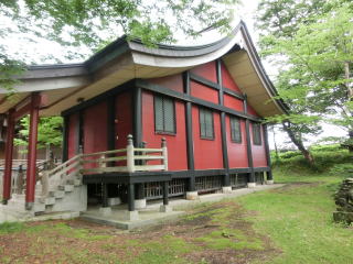 この社殿は明治二十六年十二月夜看守の失火により焼失し、同二十八年二月社殿再築費補助として政府より金五百円が下付され、県内の有志相議って寄付を募り、明治三十二年社殿を秋田市佐竹城跡(現在の千秋公園本丸)に建築し官祭秋田招魂社と称した。昭和十四年三月秋田県護國神社と改称され、旧社地(現在地)高清水丘に本殿流造の荘厳な社殿の造営が成り、同十五十一1月十五日盛大な遷座祭が行われた。
