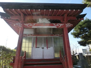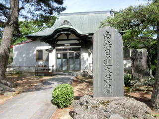 本堂に安置されている石造宮殿は、日蓮上人の石像をあんちするため嘉永二年(1849)に造立されたものである。木造宮殿規模や構造・細部意匠を忠実に模した石造宮殿は、県内には例がなく、緻密かつ精巧な江戸時代後期の大型石造物として貴重である。