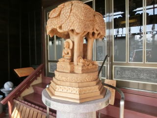 釈尊(仏教の開祖)が初めて仏像として表現されるようになったのは、ご入滅から二百余年の歳月を経て、いわゆる「梵天勧請」(紀元前一世紀後半)以降のことです。それまでは、拝む対象として仏塔・聖樹・法輪・仏足石等に現わされ、普通の人間の力では、具現的に色や形を表現することは不可能であったと考えられています。しかし、仏教の教えは玄来決して難しいものではなく、もっと私たちの生活に密着した、生きてゆくことへの指針であった筈です。印度で育った菩提樹を、印度人の彫刻家が彫った「釈尊の四大聖地仏像」に接し、合掌し、手で触れ、もっと身近にお釈迦様の御教えを、御心を感受してみてください。