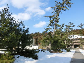 かつて女人禁制だった太平山は、非常に険しい山であり、また十一月から五月にかけては雪に覆われ登拝が出来なかったため、年間を通して老若男女が参拝できる里宮が建立されました。太平山の秀影を東に仰ぐ社域一帯は、風光明媚を賞した秋田藩主佐竹公の雪見御殿(別墅)が築かれていた場所で、太平山遥拝所として藩主より神社に寄進されました。