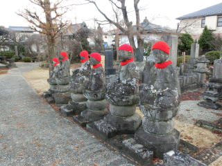 六地蔵とは六つの世界、仏教で説く六道のことであります。つまり、地獄界・餓鬼界・畜生界・修羅界・人間界・天上界です。能化とは、よく教化する、つまりお救い下さるということですから、六つの世界の衆生をもって教化し、能く救済して下さる菩薩様を六道能化の地蔵尊というのです。六地蔵の六道の分担や、持物等は経典によって若干の違いはありますが、地獄界~天上界の順番で、檀陀地蔵、宝珠地蔵、宝印地蔵、持地地蔵、除蓋障地蔵、日光地蔵とする六地蔵と金剛願地蔵、金剛宝地蔵、金剛悲地蔵、金剛幢地蔵、放光王地蔵、預天賀地蔵とする六地蔵が多いが、異なる場合もある。また持物については、持物を持たない合掌の外に蓮華、錫杖、香炉、幢、数珠、宝珠等があり、六道と持物とは関係なく持つ場合が多い。大地は色々なものを生み育てますが、それと同じで地蔵とはこの台地が種々なる宝を包蔵しているように、秘密神通力の力を包蔵して一切衆生のために「抜苦与楽」と申して苦を除き楽を与えるという大地の宝を持つ処の大きな徳を地蔵様と申し上げるのであります。ですから自然の恩、大地の恩を知ってくれよと私たちに働きかける地蔵様を信仰しますと、この大自然からいろいろな恵が採れますように、皆様がそれぞれ御信心の種を播けばその人その人の願事が必ず成就するというありがたい功徳が実るのです。