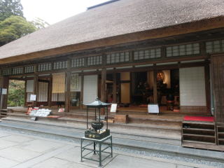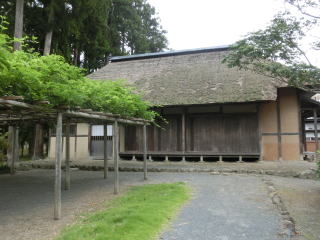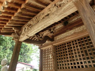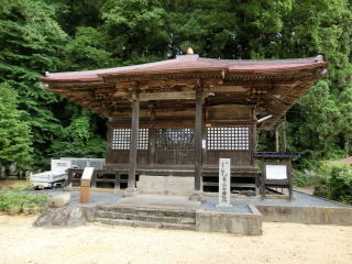 建物は東南に向きこけら葺きの京間十八畳二室からなり、四方縁をめぐらし、屋根は寄棟造りで軽快な起りを持つ簡素明快な建物で、県有形文化財です。 床の間の張付絵や襖絵は、壮麗な極彩色で、仙台藩絵師佐久間修理の作で、国重要文化財に指定されています。