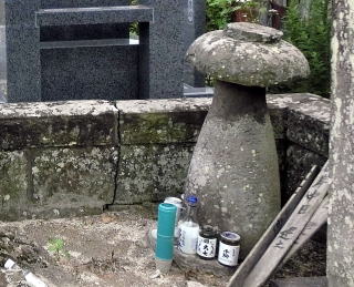 徳利に盃を被せたような形の墓は、会津塗師・久五郎のはかである。蒲生羅漢に絵を学びに来たが、安政五年(1858)に白河で没した。戒名は「米汁呑了信士」。