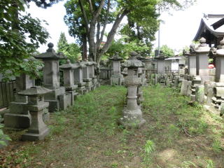 白河口の戦いで無くなった会津藩の兵士を弔った供養碑最右側は会津藩士・三坂喜代助之墓 其の左側は会津藩士・笹沼金六之墓 その他境内に多数の列藩同盟戦死者の墓がある。