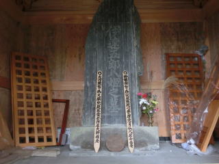 頼賢の碑 六角堂内に保護