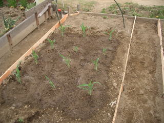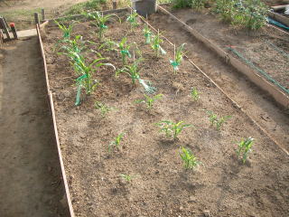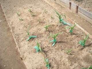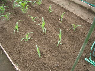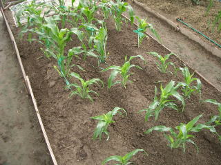 発芽生育には13℃〜15℃以上が必要ですから無理な早まきは避けること。ポリマルチなどで地温を上げると効果的です。畦幅70cm、株間30cmに2〜3粒づつ点まきし、本葉3〜4枚になった時、間引きして1本立ちにします。