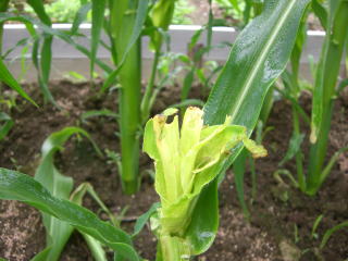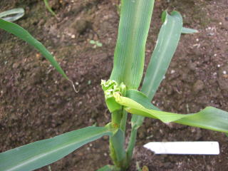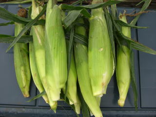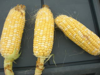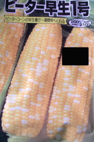 雌穂は「ピーターコーン」より大型で、包皮色が非常に濃く、見栄えが良い。