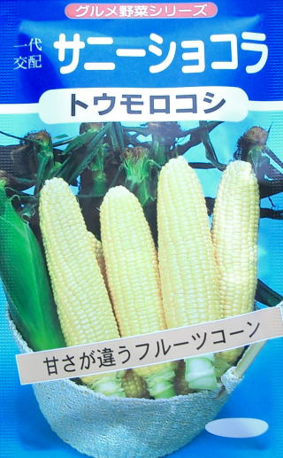 黄色粒と白色粒が3:1の割合で混じるハニー系のスイートコーンです。熟期はピーターコーンより1週間くらい早く黄色粒の濃い早生バイカラー品種です。83日前後で収穫、先端までよく着粒します。ピーターコーン同様に甘みが強く、粒皮」が柔らかくてかすが残らず食味は抜群です。初期成育が旺盛で作りやすく家庭菜園に最適、市場性も高い。