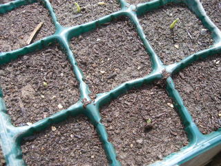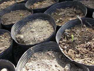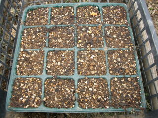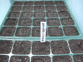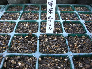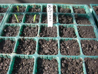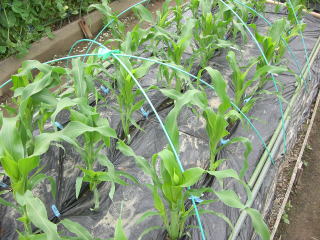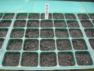 発芽温度が高いので(25℃)ポリフィルムを敷いて2cm位の深さにまきます。
