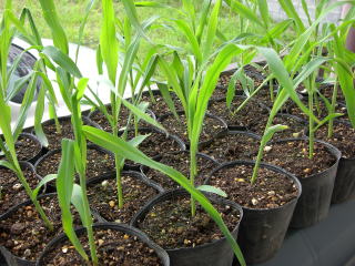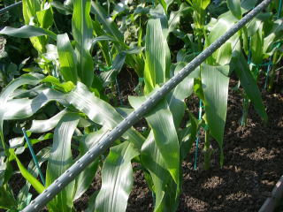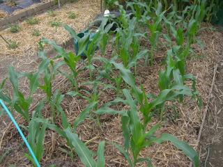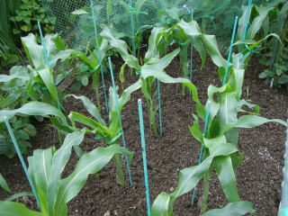 1u当たり2握りの苦土石灰と元肥をまいて耕し畝を作り1週間程度ねかせます。種をまく深さは2cm程度で1つの穴に3粒まき、土掛けをします。湿度を上げる為にマルチをします。10日程度で発芽します。本葉が3〜4枚になったら弱い苗を間引きし、2本立ちにします。本葉5〜6枚で間引き1本立ちにして、根元に土寄せし一回目の追肥をします。葉の先に雄穂が出て数日後に葉の付け根の雌穂から絹糸が出てきます。その頃2回目の追肥をしてください。